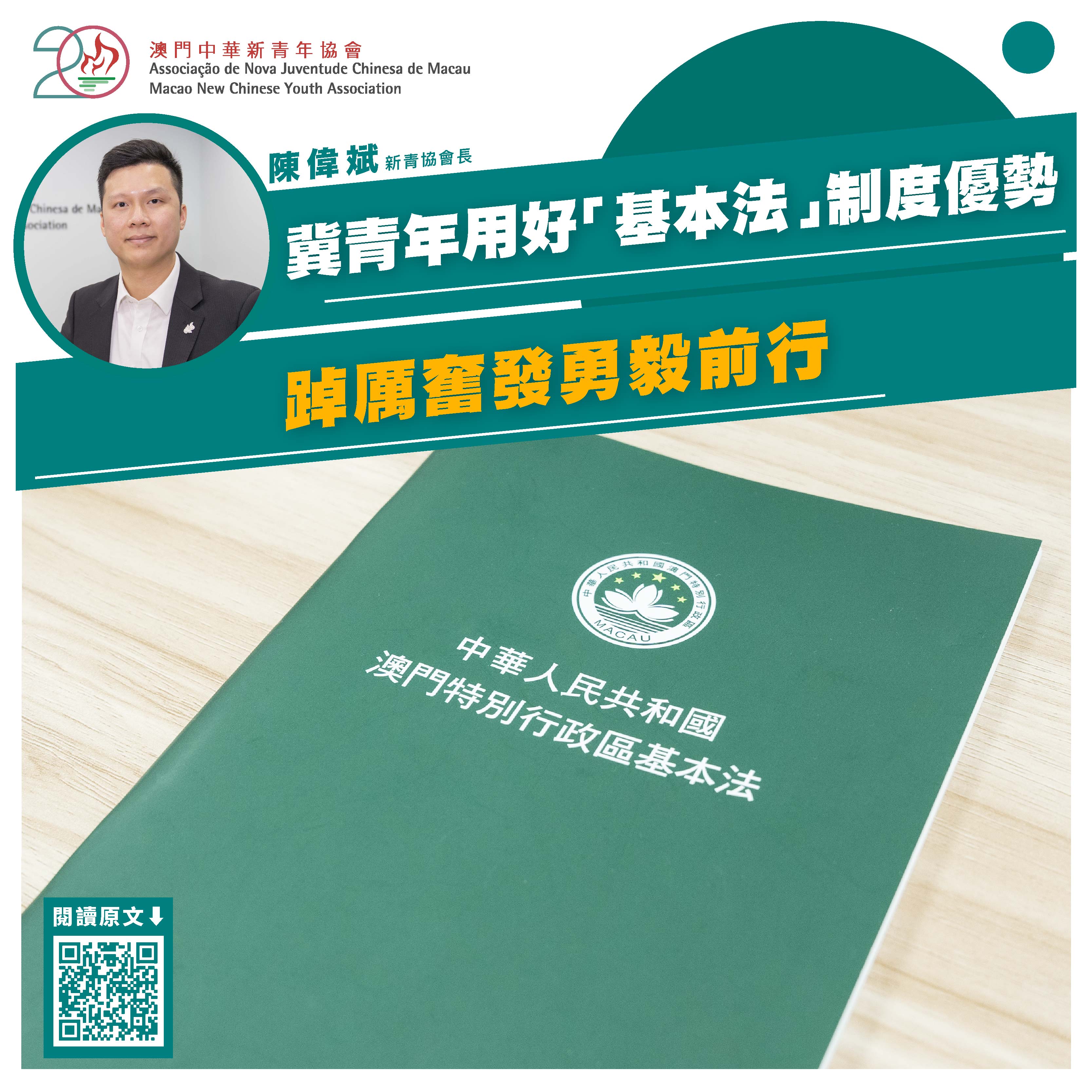 作为爱国爱澳的青年社团,新青协今后将继续带领广大澳门青年正确理解和遵守《宪法》和《澳门基本法》,协助青年树立正确价值观,增强民族自豪感和主人翁意识,培养有理想、敢担当、能吃苦、肯奋斗的「一国两制」事业接班人,并鼓励澳门青年捉紧发展机遇,踔厉奋发,勇毅前行,主动融入国家发展大局,让爱国爱澳的光荣传统薪火相传,推动澳门「一国两制」事业行稳致远。