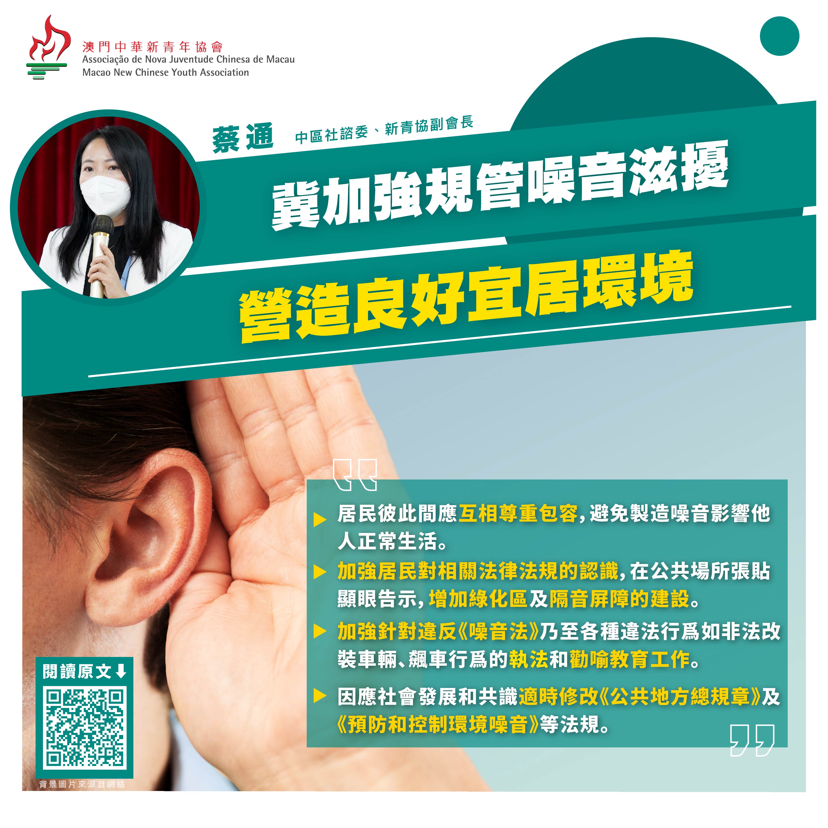 为营造良好的宜居环境,改善及规管噪音,本人提出以下建议: