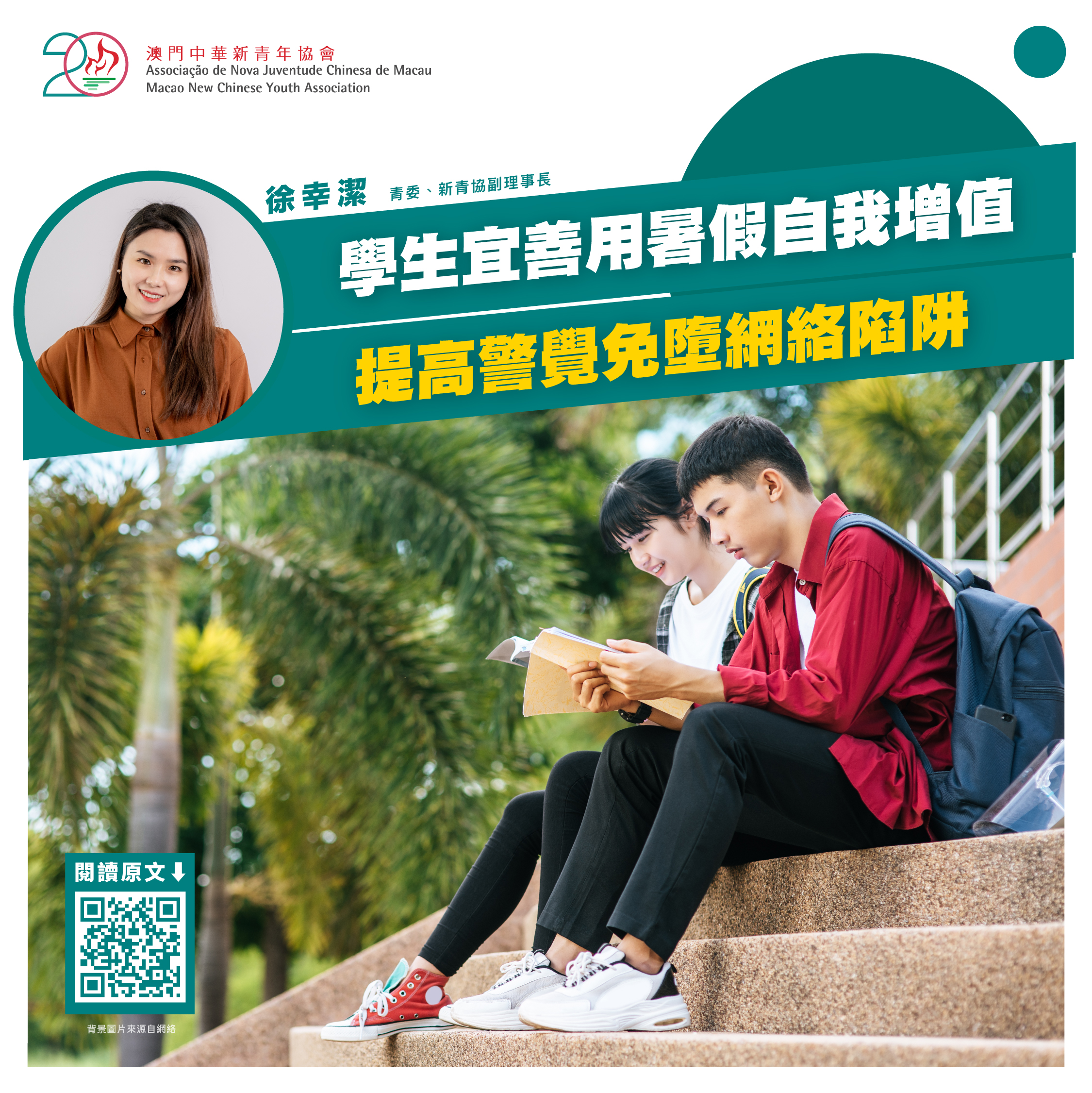 悠长假期,学生接触网络的时间增多,鑑於网上资讯良莠不齐,徐幸洁提醒,家长应多加留意子女的上网时间和行为,避免观看到涉色情、暴力、赌博、吸毒等不良资讯,或是沉迷网络世界、游戏,建议家长可与学生共同制定上网规则,为其培养正确的网络使用态度和习惯,建立良好价值观及资讯素养,加强防範意识。她认为,家长应藉着暑假与子女加强沟通,增进亲子关系,多鼓励子女参与户外运动,打造健康无限的活力假期。