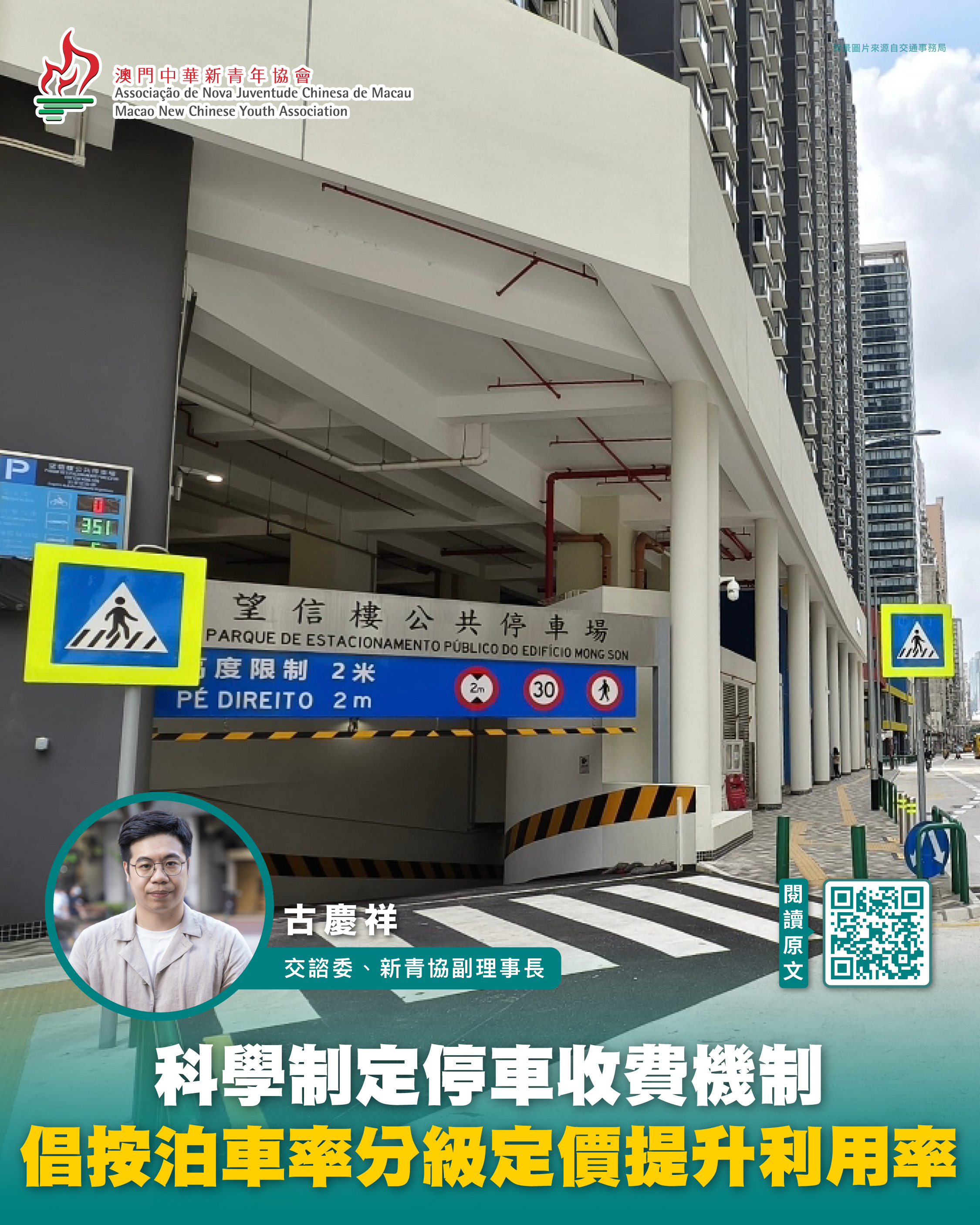 古庆祥指出:本次收费区间的调整可谓踏出第一步,冀随着澳门停车场收费机制不断成熟,科学制订不同停车场的收费机制,可存在根据泊车率高低、不同时间段的使用程度等特性而制订不同收费计算,如长期超过八成泊车率的停车场可考虑提升收费价格。另一方面,针对泊车率较低的停车场,理应有减价机制,同时可考虑推出具针对性和灵活性的泊车优惠,如短期月票、特殊时段的优惠价格等,鼓励用家使用较偏远的停车场,进一步提升停车场资源的利用率。