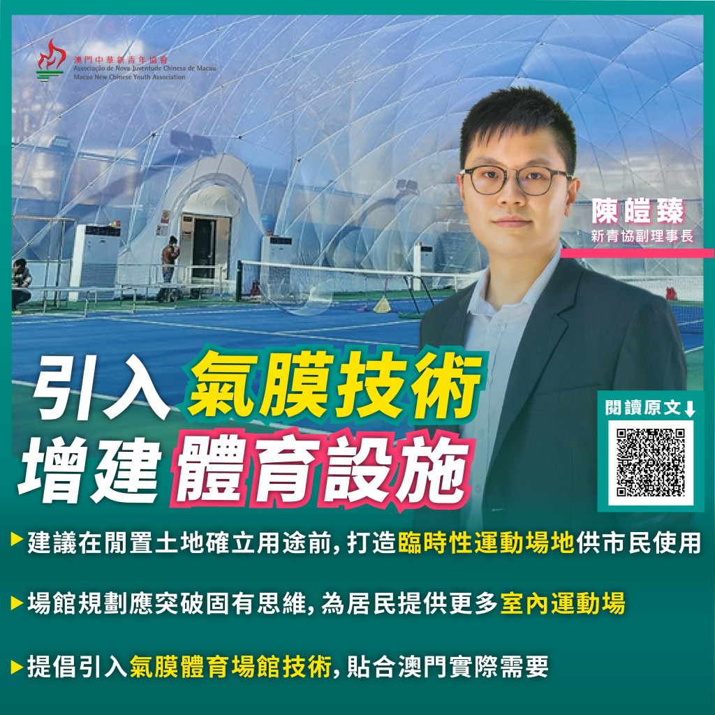 - 技术成熟:气膜体育场馆在国内外已应用多年。去年九月,国务院办公厅发布《关於加强全民健身场地设施建设发展群衆体育的意见》,更明确支持建设符合环保和安全等要求的气膜结构健身馆。国内有技术成熟的供应商,相信引入澳门难度不大。