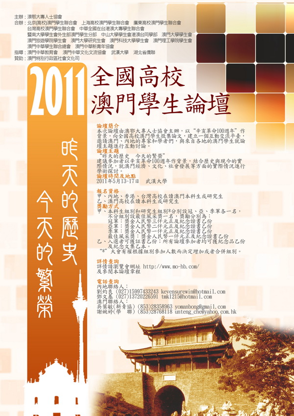 指導:澳門中華教育會 澳門中華文化文流協會 武漢大學 湖北省僑聯