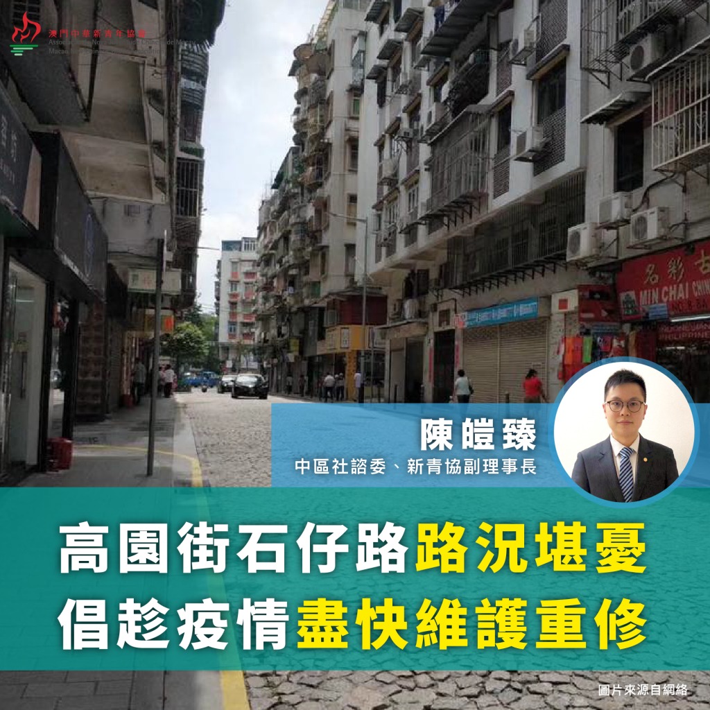 由於毗鄰澳門著名旅遊景點,疫情前大量旅遊巴會在高園街落客,旅遊大巴在崎嶇不平的路面行駛易造成交通意外,對遊客及附近居民造成影響。而遊客遊覽後亦會經高園街步行至瘋堂斜巷、和隆街、西墳馬路到達塔石廣場地下上落客區上車,破爛的路面亦會影響遊客對澳門城市面貌的觀感。