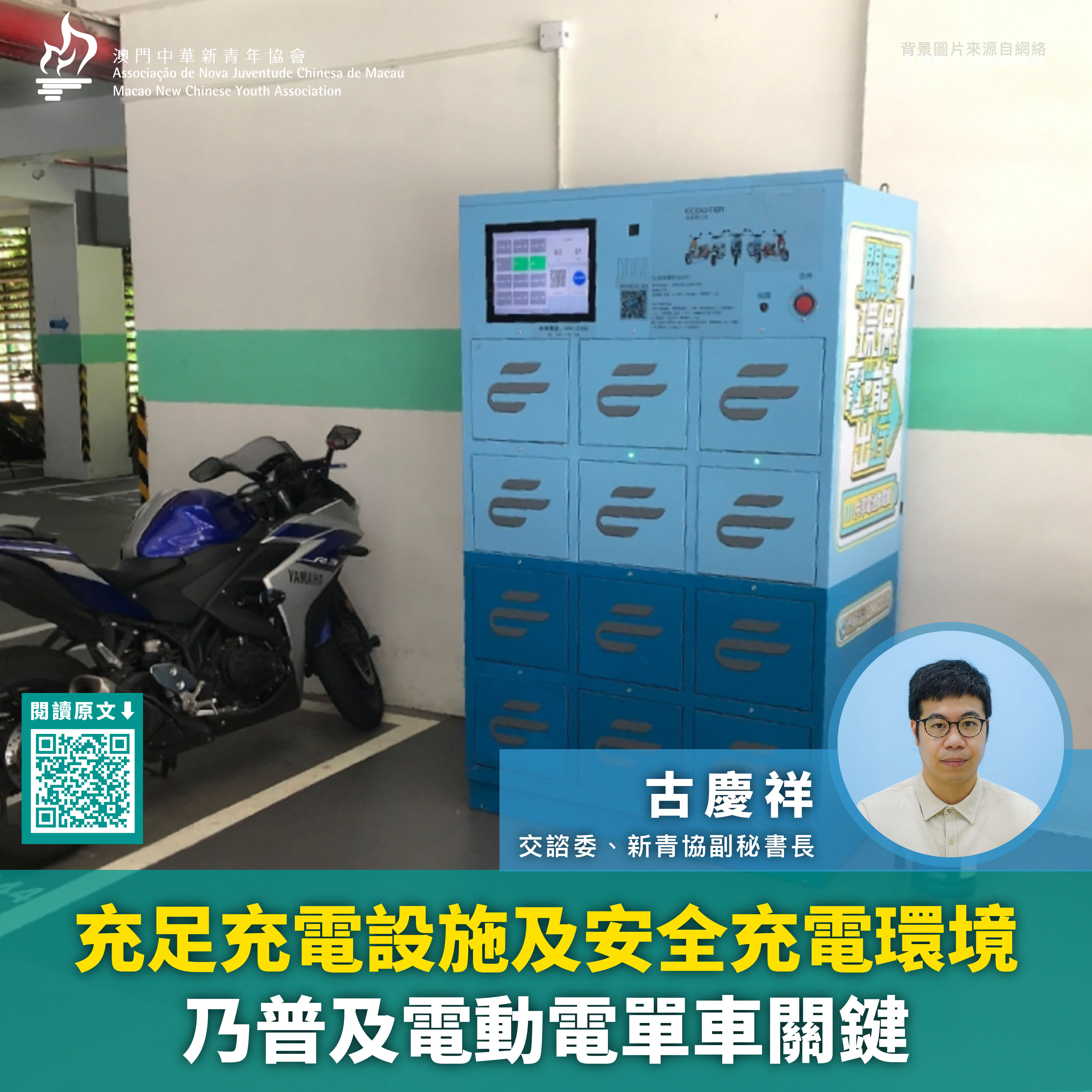 古慶祥續指,從逐年上升的電動車數量可見政府推行電動車普及的成效,然而電動摩托車的增長量一直未如理想,據統計暨普查局2021年12月的數據,逾十二萬輛摩托車中僅有約三百輛電動摩托車,占比不足百份之一。一般而言,選擇摩托車代步主要考慮因素是方便性,他認為首要解決充電設施不足、充電點或換電櫃分佈不便民等問題,否則難以進一步普及電動摩托車的使用。目前全澳只有兩個摩托車充電位及九個換電櫃,當中有六個換電櫃位於公共停車場,且絶大部份集中在澳門半島,僅有一個位於氹仔,無論在數量上或是分佈上都急待提升,以應付計劃推行後可預視增長的充電需求。