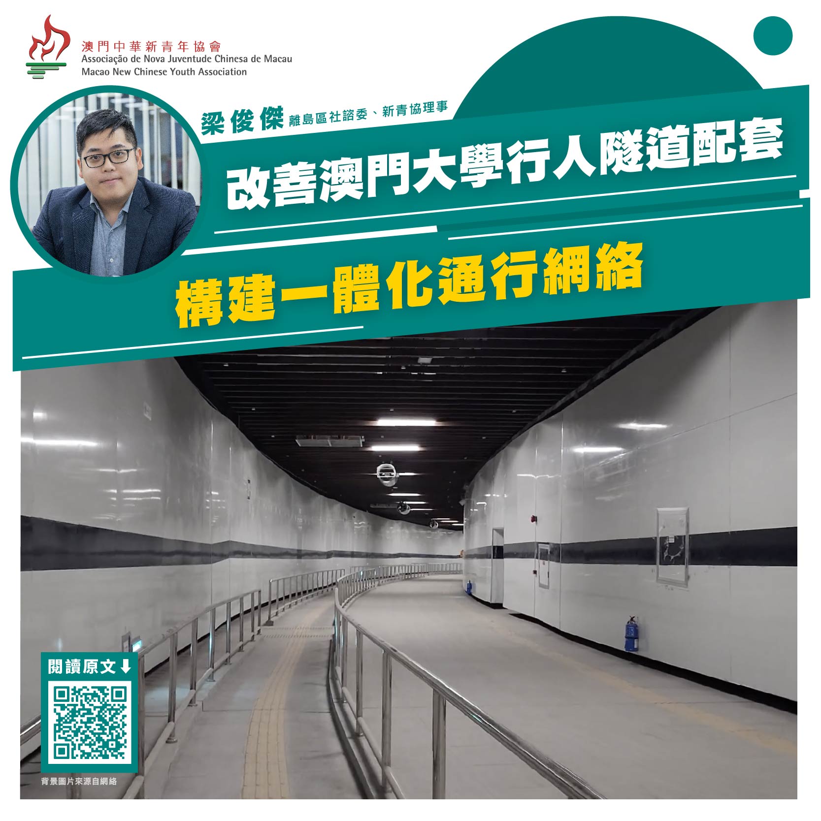 市政署近日提出,計劃採用橋樑方式連通氹仔海濱單車徑和蓮花單車徑。可以預見,在兩個單車徑連通後,路氹西側的單車和步行網絡會連成一線,行人和單車使用者出行將更為方便。目前,行人隧道已交由市政署管理。市政署可以利用此一契機,優化目前澳門大學行人隧道配套,從而提高該隧道的使用率。