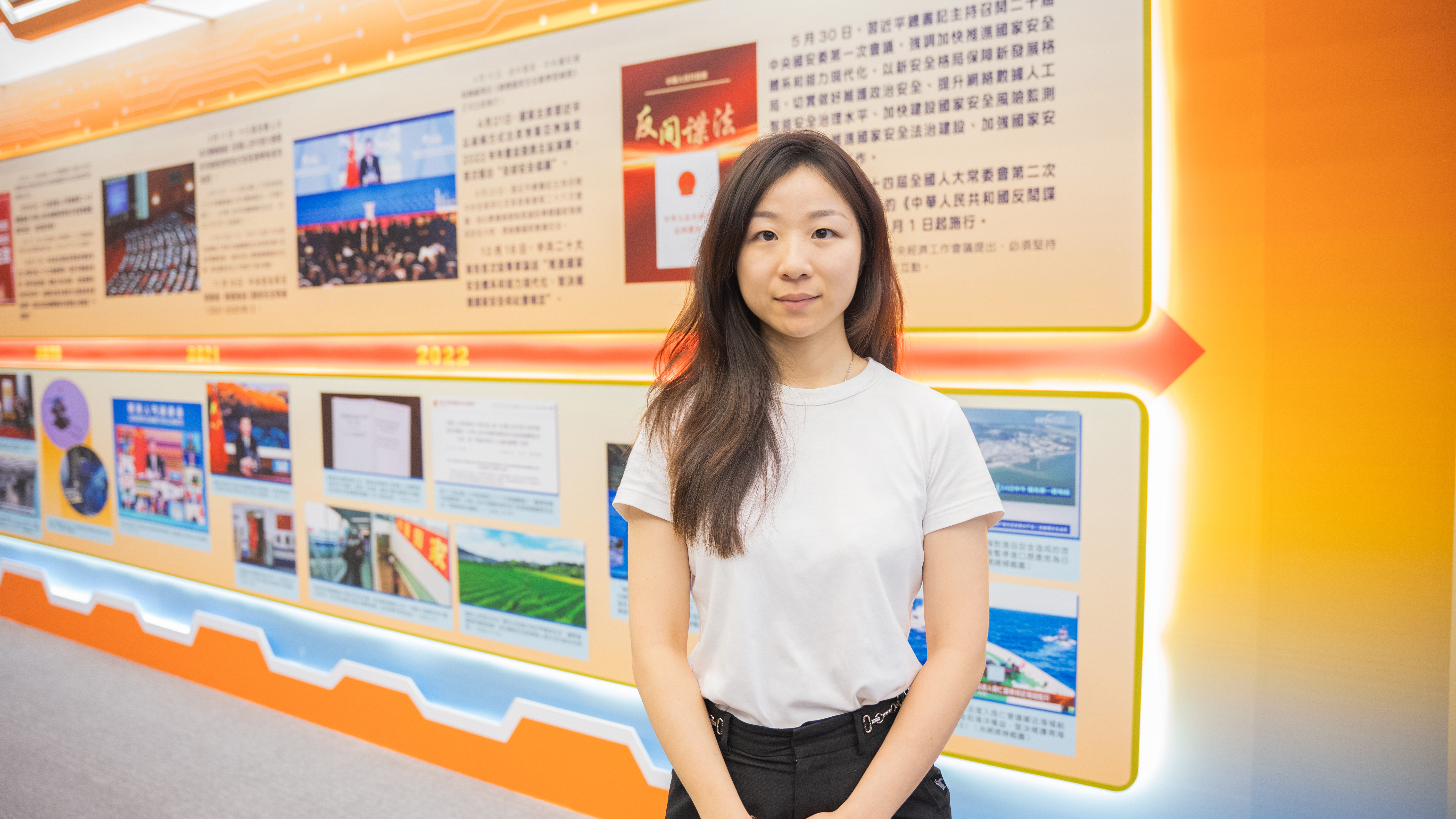 理事周艾子認為展覽不僅彰顯了國家安全的重要性,還強調了維護國安是落實到每位公民身上的應盡之責。通過學習展出的多媒體資料,她認識到國家和特區在維護國家安全上取得的豐碩成果,更明白和平穩定的可貴及來之不易。在面臨新時代偉大征程中的各種挑戰和機遇,青年要擔當好維護國家安全的參與者和推動者。她定必以行動積極維護國家安全寶貴成果,將個人成長緊密融入至國家發展當中,共同為強國建設貢獻力量。