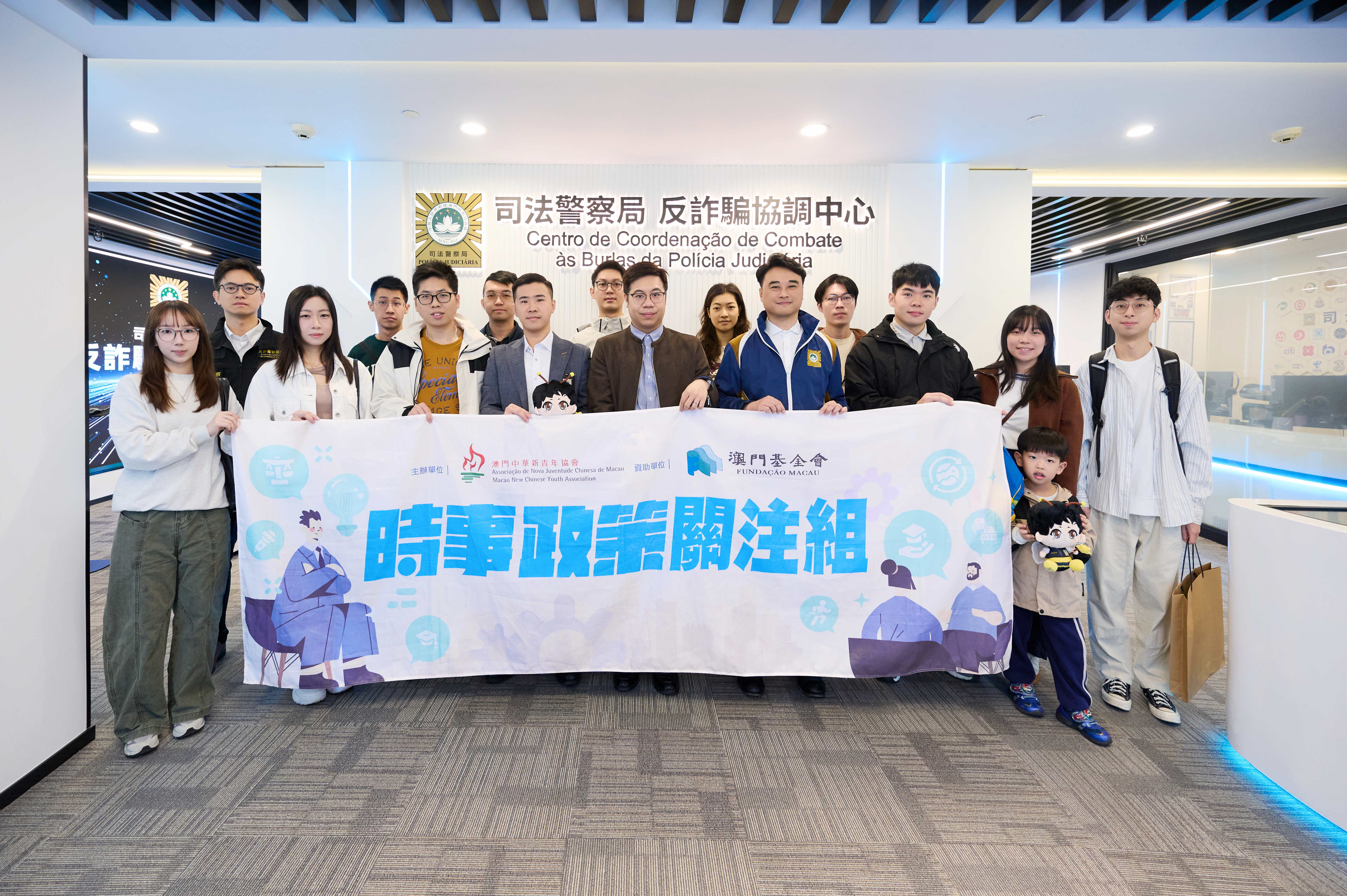 澳門中華新青年協會日前由協會副理事長古慶祥帶領青年參觀司法警察局「反詐騙協調中心」,冀讓青年了解本澳反詐策略、識別常見詐騙手法,提升社會防騙意識。本次活動為由澳門基金會資助的「時事政策關注組2025」系列活動之一。