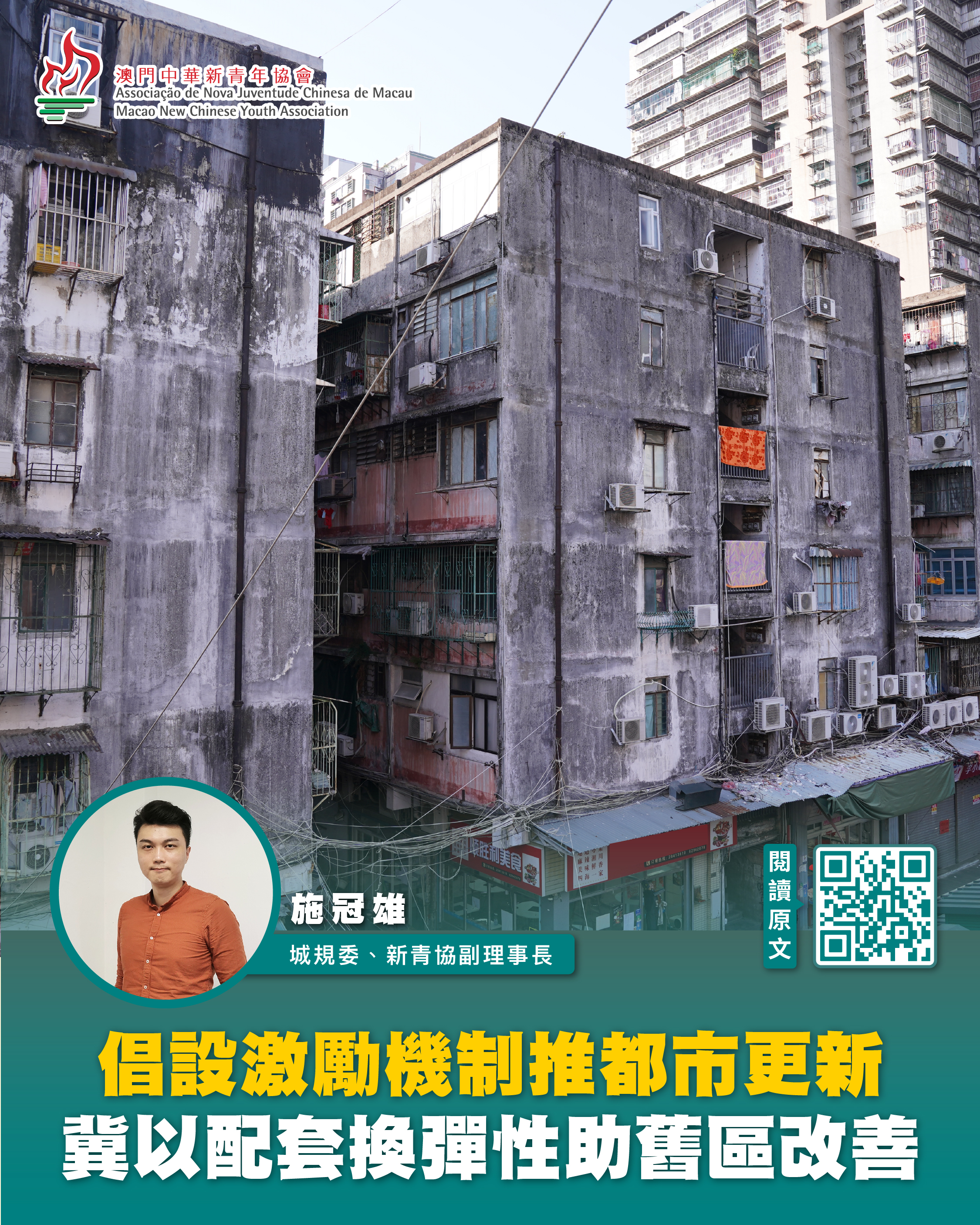 隨着本澳超過三十年樓齡的樓宇數量持續增加,都市更新在應對樓宇老化風險方面的重要性日益突顯。運輸工務司譚偉文司長日前表示,政府研究擴展置換房及暫住房的適用範圍。城規委、新青協副理事長認為,相關措施可以有助更充分發揮兩類房屋在推動都市更新中的關鍵作用,提升居民對都更的信心與可預期性,並期望以都更為切入點,帶動舊區整體居住質量的提升。