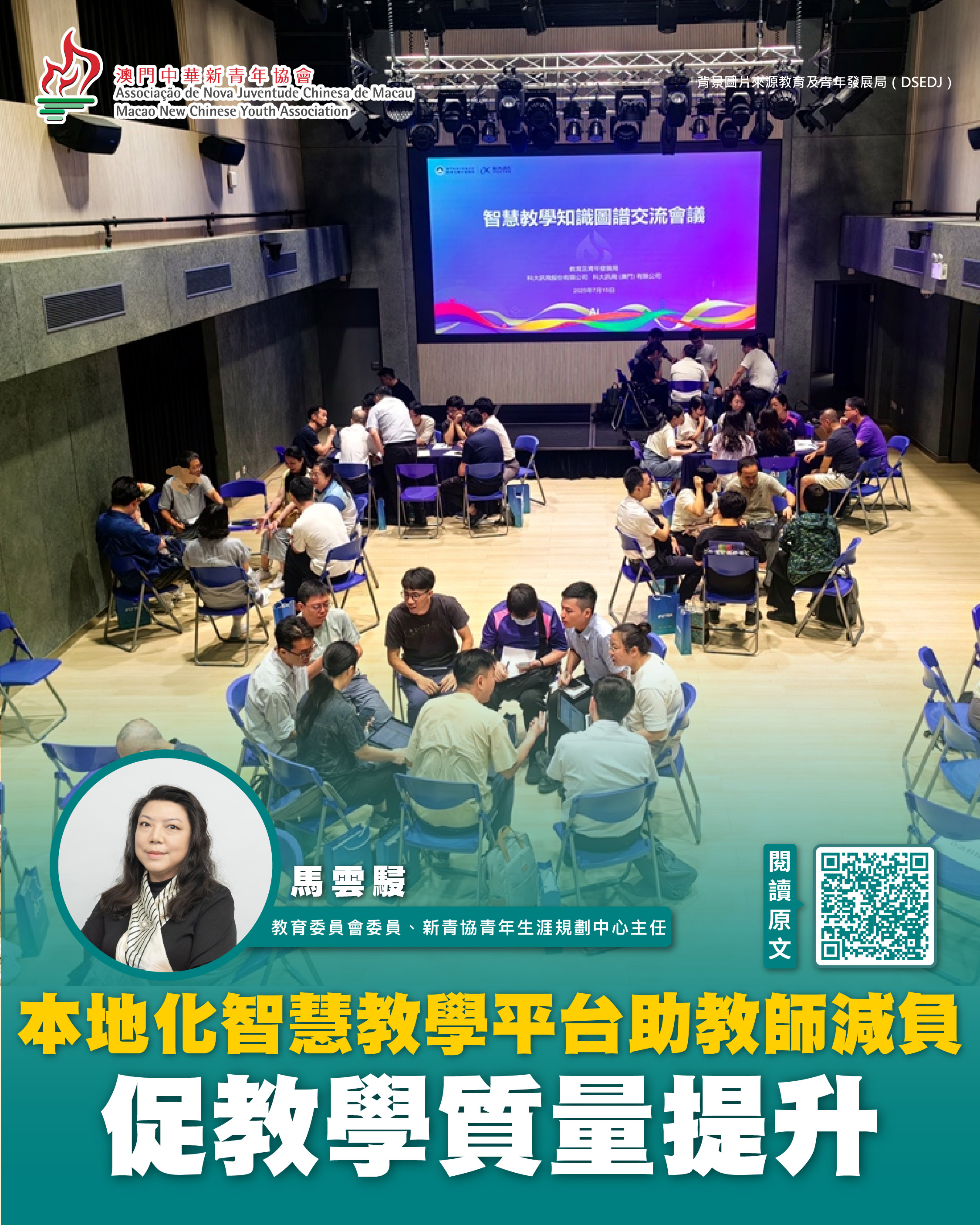 教青局計劃於 2026/2027 學年推出本地化智慧教學服務平台,將整合配合「基本學力要求」的學科知識圖譜、智能題庫及智能批改等功能,期望減輕教師由備課至評核的工作負擔。教育委員會委員、新青協青年生涯規劃中心主任馬雲駸表示,若平台能建立具本澳特色的教學數據庫,將有助改善教學支援的系統性,尤其可在批改、評核等重複性工作上分擔教師壓力,讓教師把更多時間回歸課堂互動、教學設計與學生支援,從而提升整體教學質量。