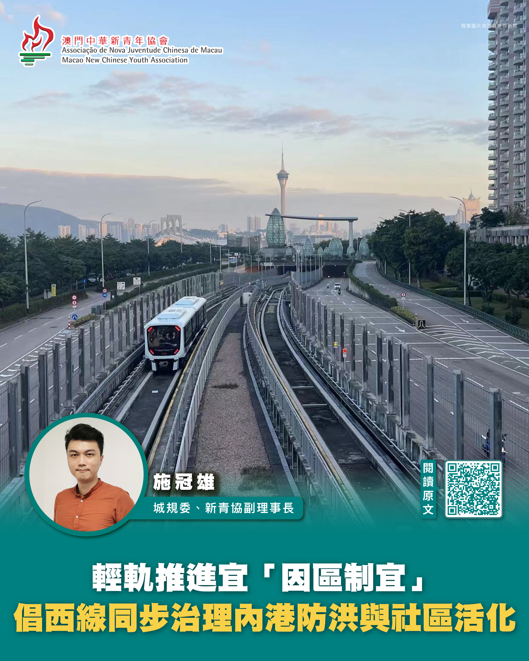 他指出,現時輕軌有多條線路方案,西線在客觀條件上具一定挑戰,但正因如此,更應把工程視為片區提升契機,除交通功能外,亦可同步處理區內長期問題,例如內港防洪壓力、社區經濟活化及環境衛生等,讓「建設」同時帶動「治理」,為社區帶來更全面的改善效益。從整體城市規劃角度而言,他認為未來若輕軌可逐步形成具覆蓋面、承載大客流量的網絡,將有助澳門突破城市發展瓶頸,提升居住便利性、經濟發展潛力及商業價值,故支持輕軌有序推進。